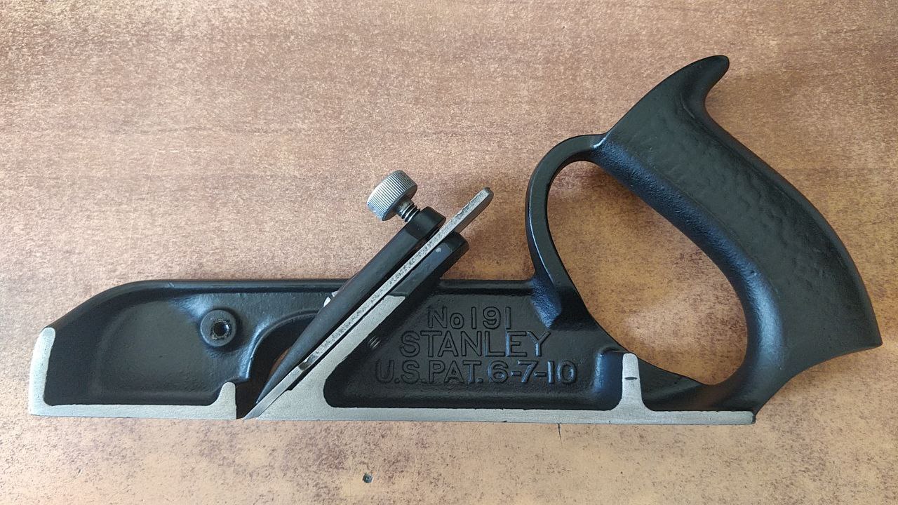 Apparently, Stanley made the last of these planes in 1962, so it must be quite old. Post-1910, certainly, judging from the screw and the patent date on the casting. It is slightly narrower than the #190, and slightly wider than the #192.