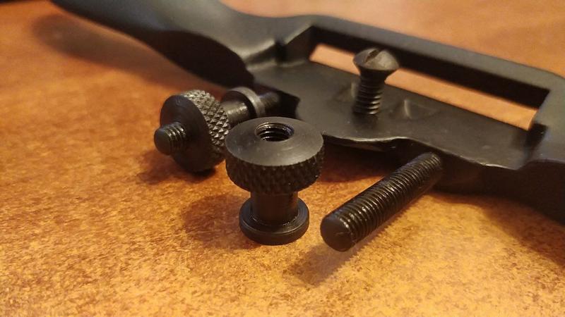 The metal nuts and screws got treated with some cold bluing solution made mostly from selenium dioxide. Same with the threaded rods attached to the cast iron body that I've masked during painting.