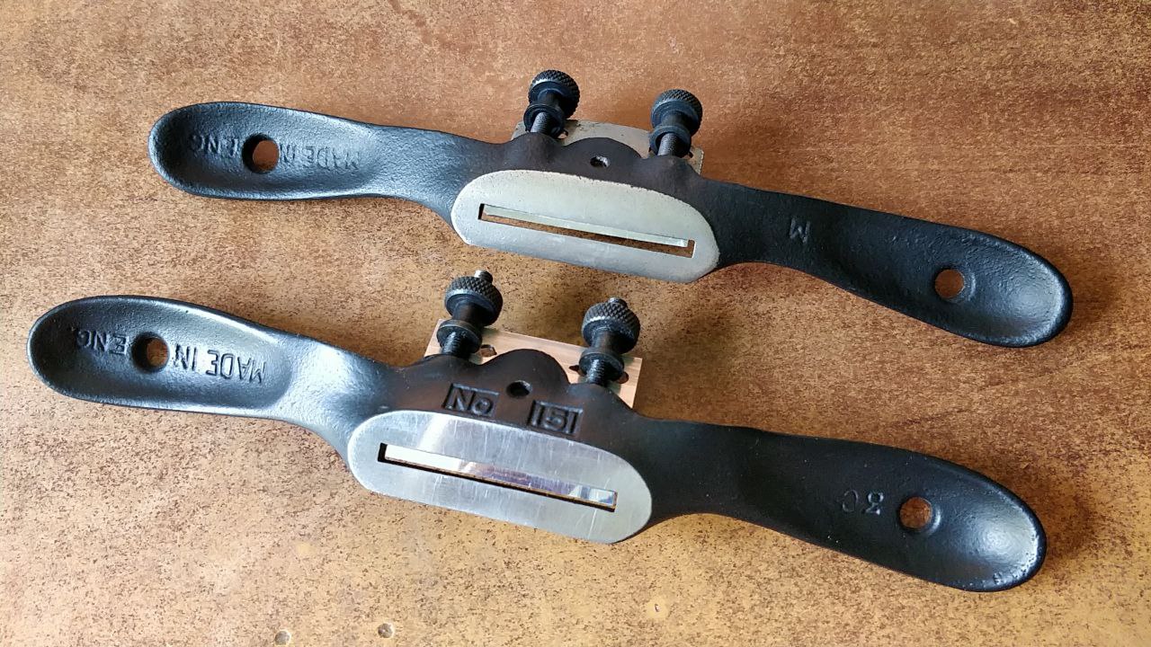 Stanley used to make two notable spokeshave varieties, #51 and #151. They are identical, except #151 has adjustment screws, and #51 needs to be tapped with a hammer to adjust the blade. Both were available with flat and curved soles. Stanley #151 is still in production, but as usual, I bought vintage pieces in need of being restored.