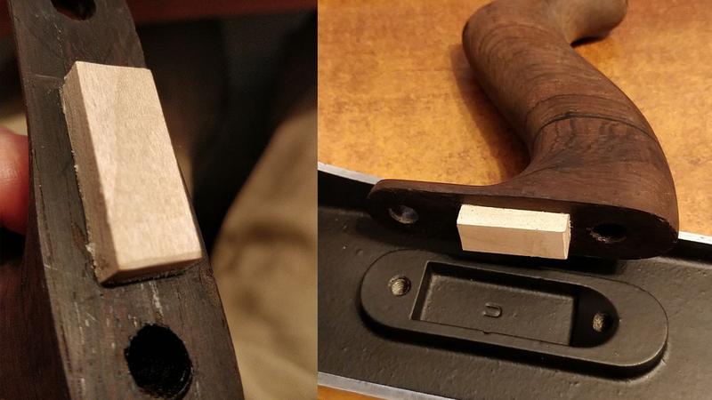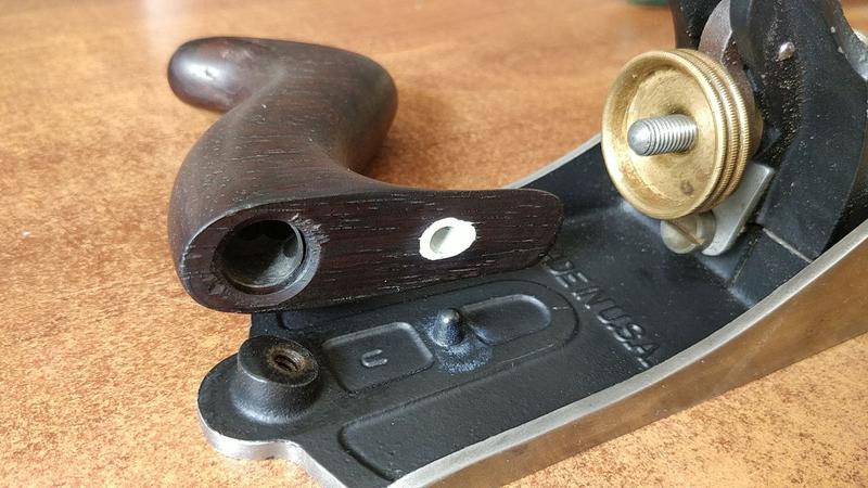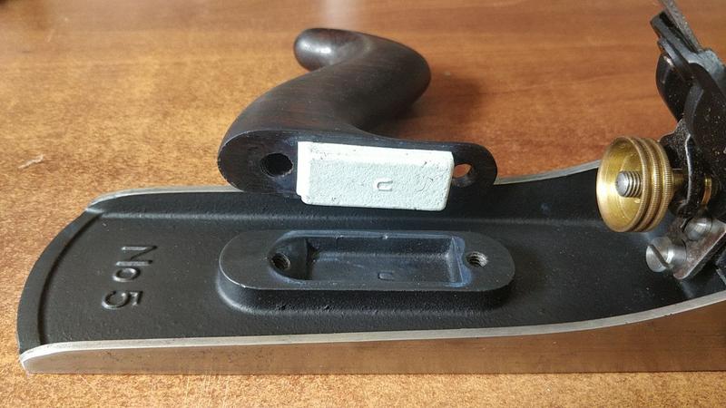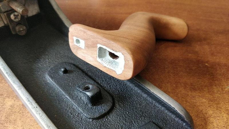 The tote on the #5 was obviously bigger and was held in place with two screws. There was also a big hollow in the plane body right under the tote, and I used that hollow as a mortise to secure the tote in place.