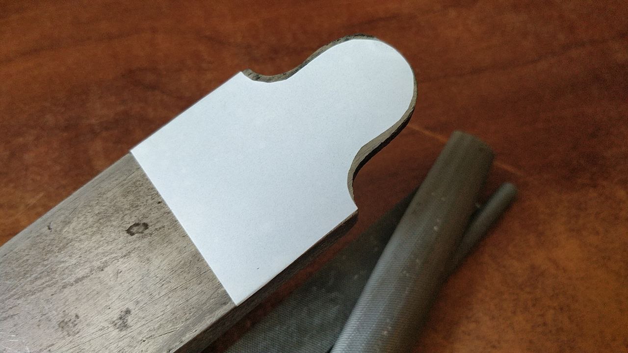As I already mentioned before, the casting was quite gnarly. Cast iron is easy to file, so I was able to make the rims nice and clean. I filed down quite a lot at the heel of the plane. Fortunately, I was not working to any exact dimension, so I filed it until the heel looked good with flowing curves. It is now narrower than before, and not perfectly symmetrical, but that is not an issue. I am still to make the tote, and the tote can be made to fit the body.