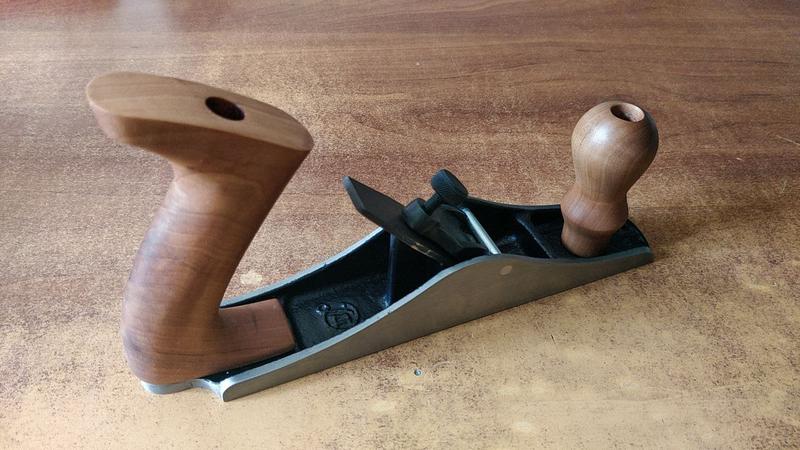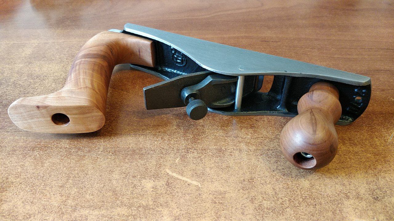 I can comfortably hold it with all four fingers. As a trade-off, I've lost the ability to adjust the blade with a hammer. The tote is in the way. This is not an issue for a scrub plane, but if I am going to make custom handles for some other piece, this is something I need to consider.