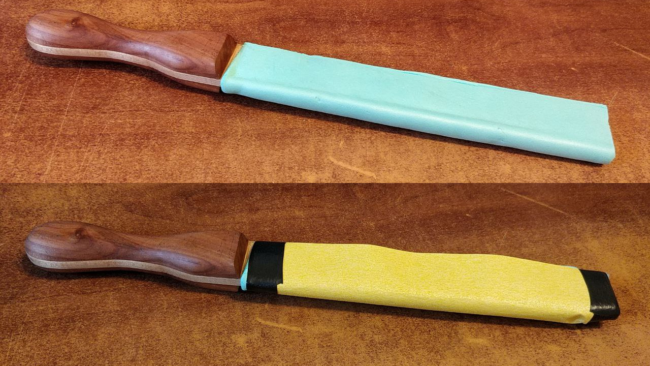 Wrap some sandpaper around the foam, secure it with tape, and we're good to go!