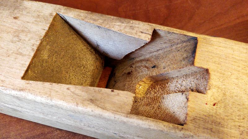 Either that, or the original wedge is lost, and this wedge is from a different, smaller wooden plane.