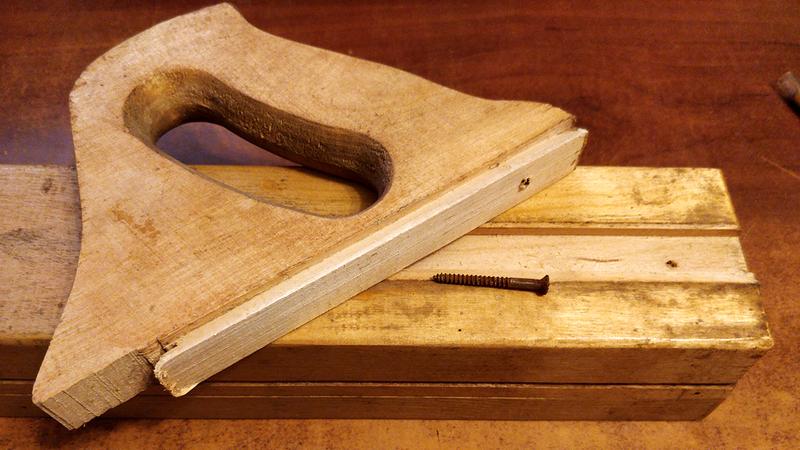 I want to eventually convert this plane to a specialized shooting plane. I'll shape the handle for a more comfortable fit, and shorten the plane. If it works out, I'll have a nice new tool. Otherwise, I'll at least get some old and stable wood for a different project.