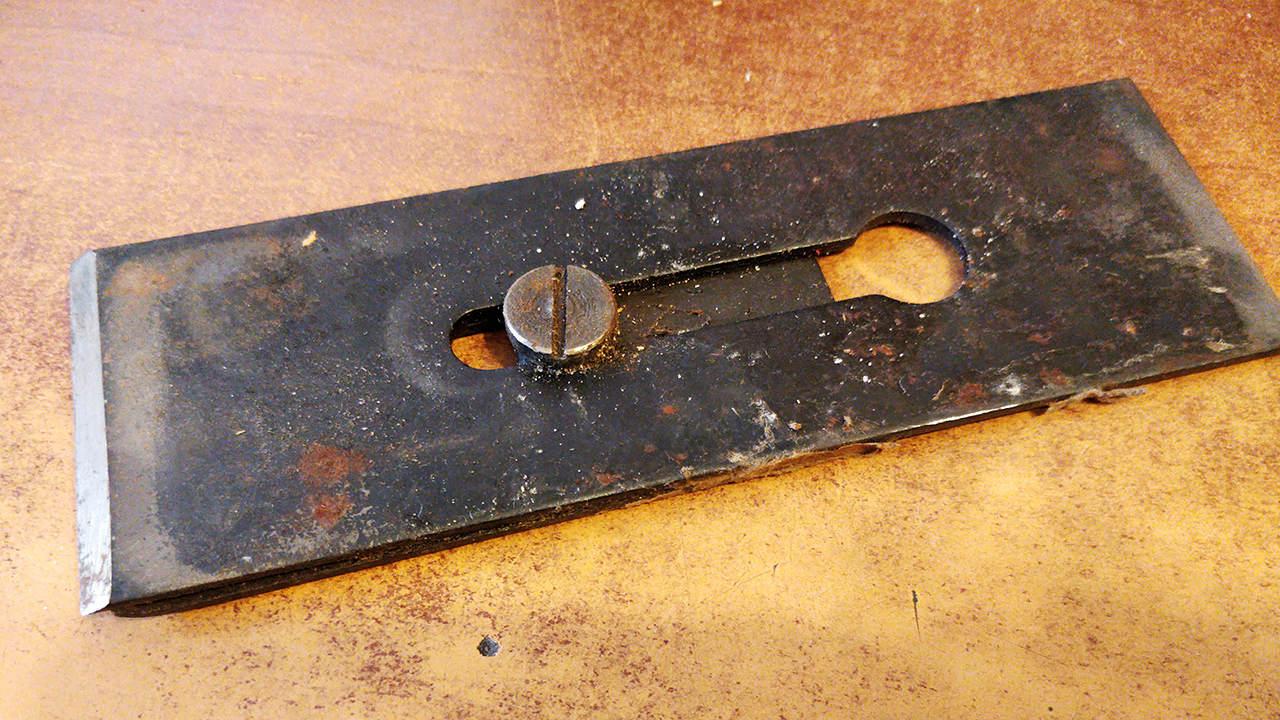 At least the blade is made from decent tool steel of the era. It's visibly out of flat, but the heat treatment is good. The blade is harder than my files and after a few strokes on the sharpening stone, the surface is nice and shiny.