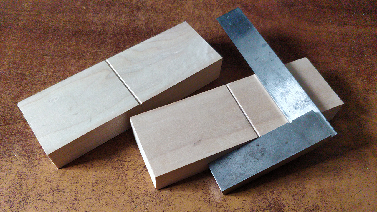 Having planed the first bevel I tried to make a groove that houses the cutting iron. I got the width right but made the groove at an angle to the front of the part. There was no way to correct this, so I started over yet again. At least the failed parts could be used to fixture the final part for planing.