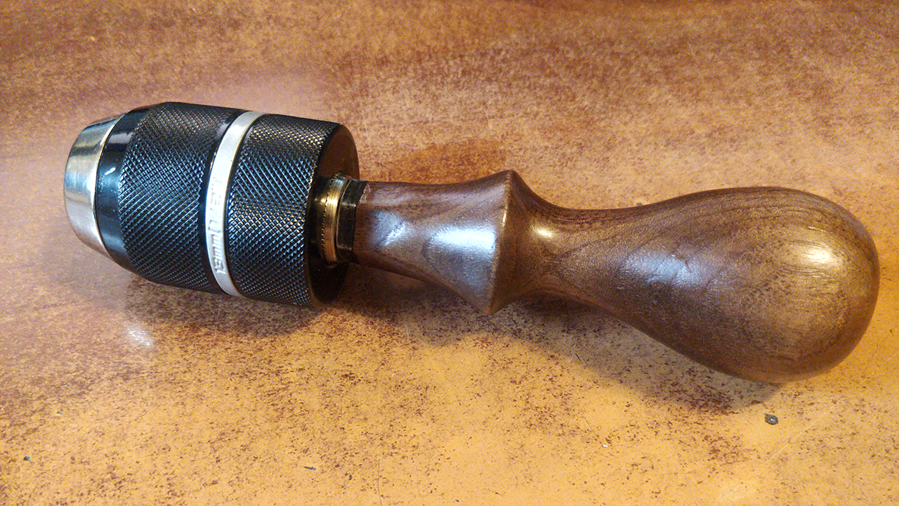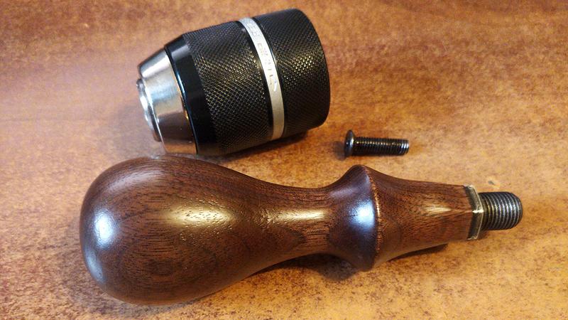 The concept is uncomplicated: a standard drill chuck is attached to a handle. In my case, it's a keyless chuck designed for use with impact drills. The chuck came with an SDS adapter, which I've permanently affixed to the handle. The chuck itself can now be mounted onto the handle, and a small left-hand screw inside the chuck securely holds it in place.
