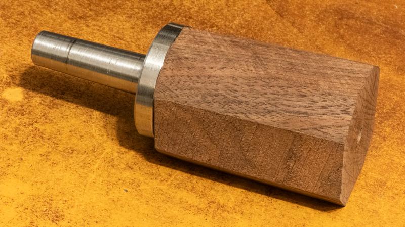 The rest of the operations were pretty straightforward. I shaped the tote using a rasp and some files, then smoothed it with sandpaper. The knob was shaped on the lathe and sanded smooth.