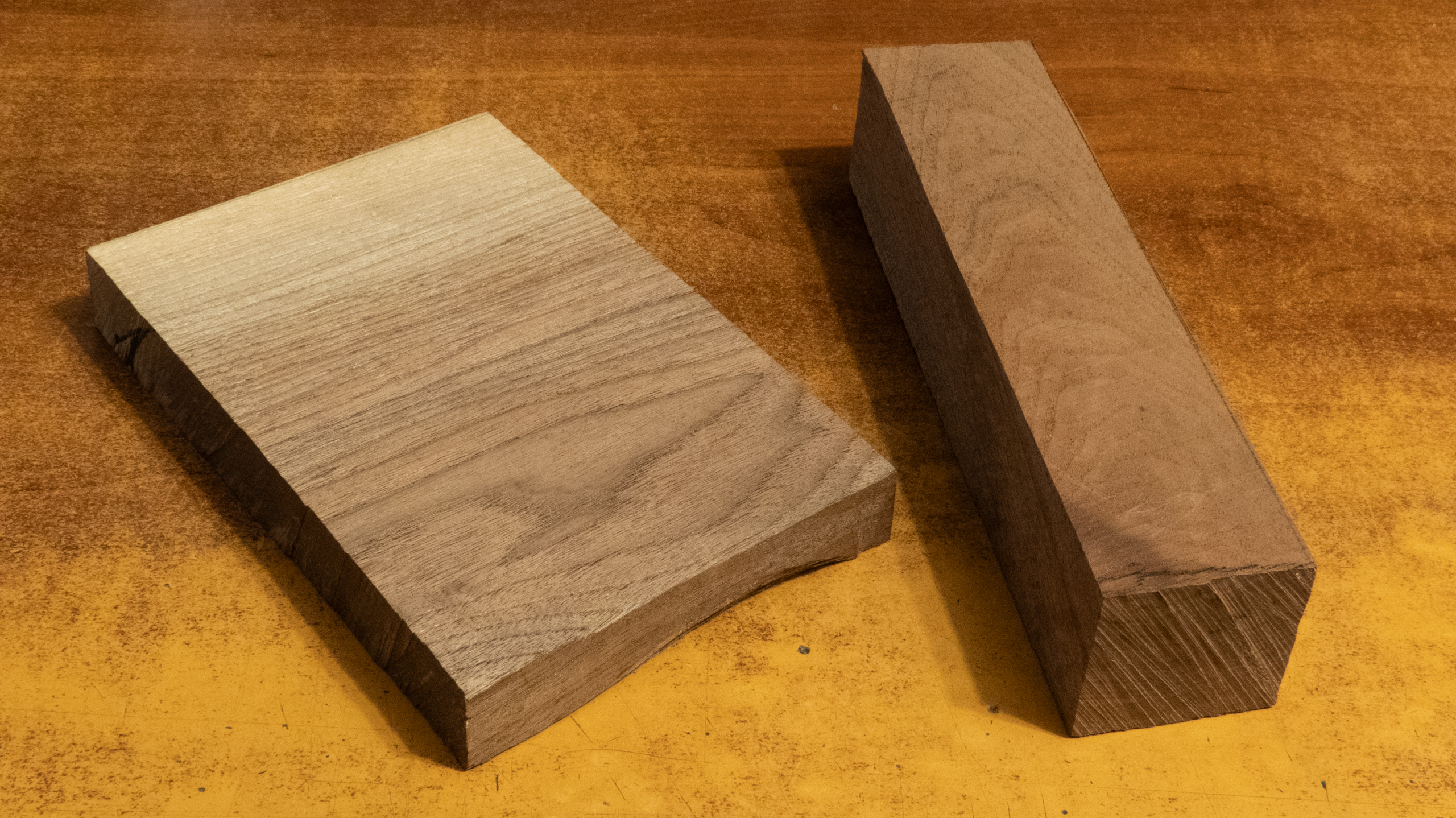 I've then picked some wood to make handles out of. These came from the same 50 mm walnut board. For this project I wanted only the dark heartwood, so I strategically arranged my pieces to only include the heartwood.