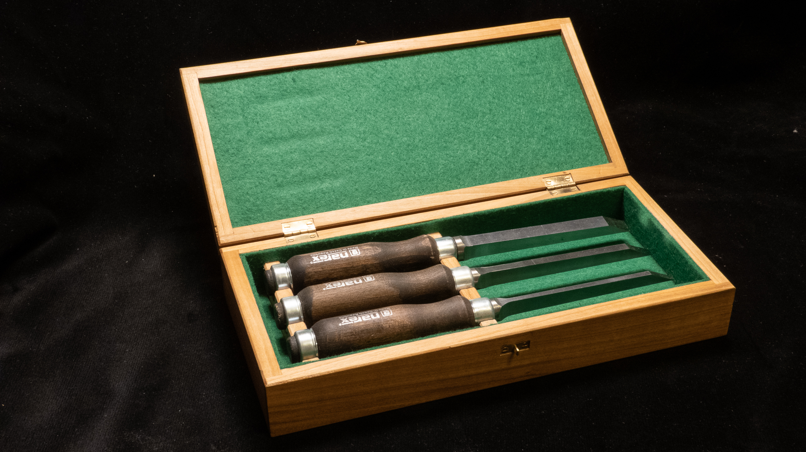 One unexpected and pleasant surprise was that with the lid closed the upper lining would sit on the chisels and even compress a little. Because of this the chisels fit snugly and do not rattle even when the box is turned upside down.